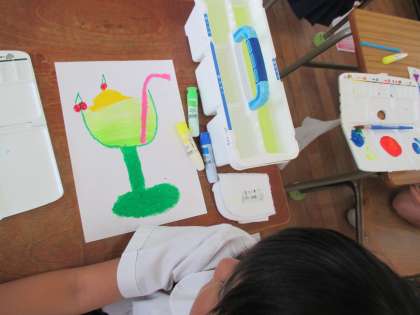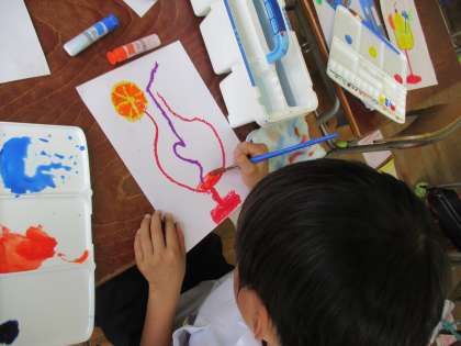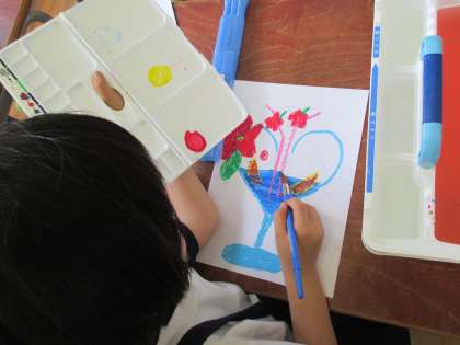 2年生は今日、図画工作科の学習で、初めての絵の具に挑戦しました!絵の具セットを前にし、どんなことをするのかな?と、目をきらきら輝かせて待っています!