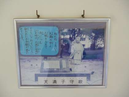 学校の職員室の前に、天満子守歌の碑の写真があります。その中に、