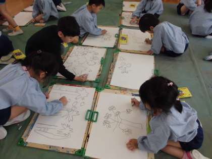 4月14日. 画用紙いっぱいに、お絵かきをしました。