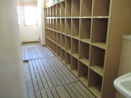 プールにつながる階段や更衣室は、1年分のほこりやごみでいっぱいです!みんな一生懸命、ほうきや雑巾で、すみずみまでしっかりと掃除をしました。梅雨の季節を前に、排水溝の砂も、かき出してピカピカにしました!