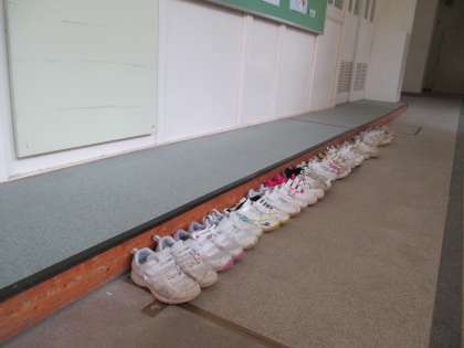 保健室前で脱いだ靴も、みんなの歯のように、きれいに並んでいました!