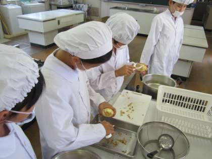 じゃがいもは、慣れない手つきでピーラーを使い、丁寧に皮をむきました。