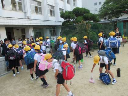 玄関でたくさんのお出迎えとカウントダウン。6年生がみんな元気に帰校しました。おかえりなさい。この2日間の経験は、9月の自然教室で活かしていこう!