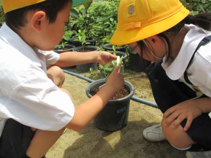 「先生、はっぱが虫に食べられてるみたい!」「はっぱの裏に、たまごがついてる!」と、心配する声が!様子を見に行くと・・・おいしいはっぱをねらう害虫「アブラムシ」が!!