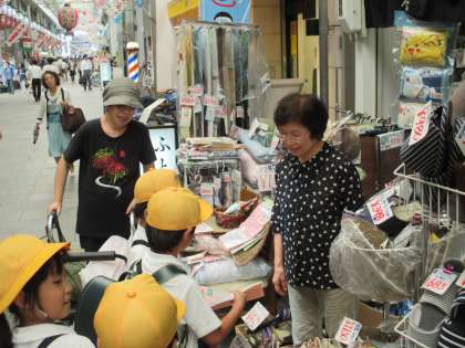 金曜日は、「町たんけん」でお世話になった天神橋筋商店街のお店の方々に、みんなで書いた「お礼の寄せ書き」を届けに行きました!