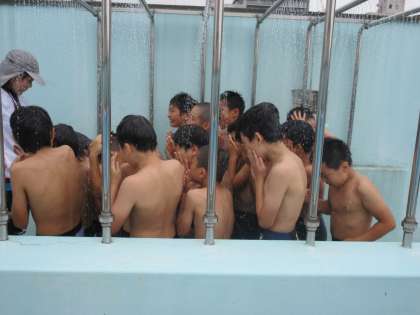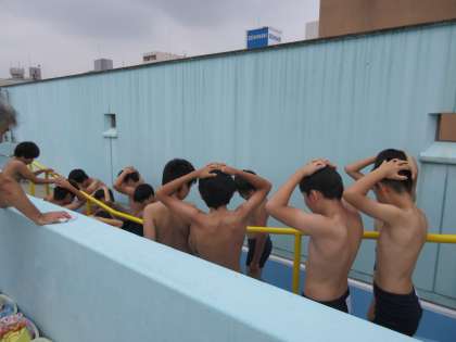 プールでの注意を確認したあと、準備体操や水慣れ運動をしました。