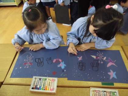 6月20日 さくら組では、科学館への園外保育での体験を絵にする活動をしました。花火の実験の様子やプラネタリウムのお星様を描いていました。