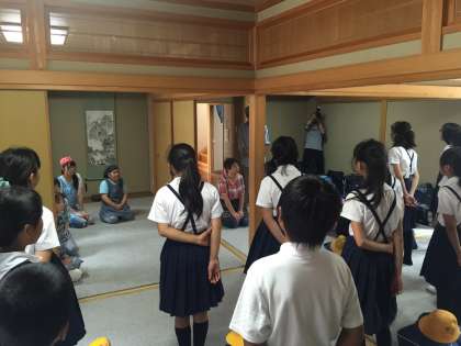 二泊三日の林間学習の最後、閉舎式を行いました。お礼の言葉の後、感謝の気持ちを込めて小さな勇気を歌いました。心を込めて歌いました。前平旅館の皆様、ありがとうございました。12時35分大阪に向けてバスは出発しました。