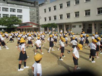 今朝は低学年のわくわくタイムがありました。運動環境委員の児童が朝から閉会式の体操を教えてくれました。2・3年生はこれまでの運動会を思い出しながら、1年生は初めての練習ということで、音楽と一緒に楽しく体操をすることができました。