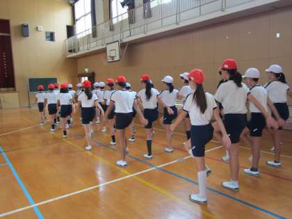 運動会の練習の行進の様子です。