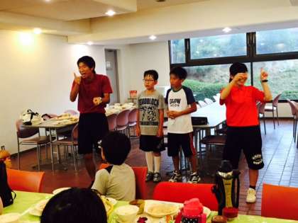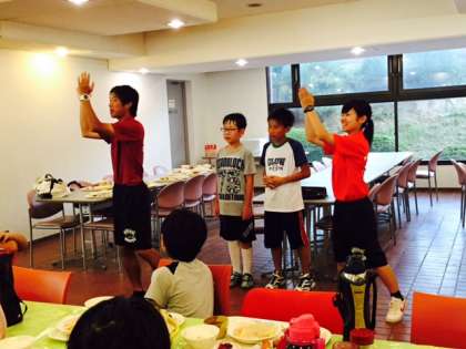 リーダーさんとダンス?いいえ、ちがいます。みんなで楽しく「いただきます!」の儀式です。