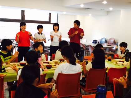 朝ごはんです。今日もリーダーさんと元気に「いただきます!」