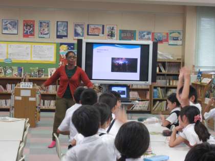 今日は、ジャマイカのあいさつや国旗、食べ物やダンスなど教えていただきました。