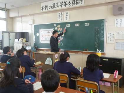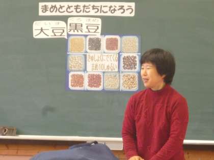 本年度2回目の栄養指導を10日・11日と2日に分けて行いました。6年生はお弁当作りでの栄養のバランスに気を付けること、4年生はよくかんで食べることについて、2年生は飲み物の砂糖の量について、1年生はまめについて、3年生は、カルシウムを多くふくむ食べ物について、5年生は大阪の食文化について学びました。1年生は、持ってきてもらったまめに名前をつけて、とても楽しんで学習をしていました。