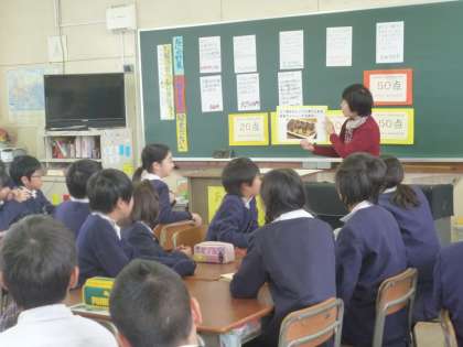 栄養指導の4年生の感想を紹介します。・よくかんだら味が変わることがわかりました。・だ液で虫歯予防ができるなんて知らなかった。・よくかむと、食べすぎを防げることを初めて知った。・よくかんで食べると脳の働きがよくなるとか、食べすぎを防いだり、虫歯を予防したりすることにつながるのだなと思いました。