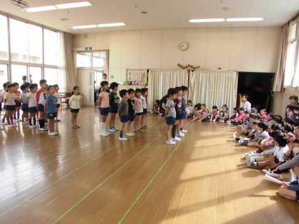 今日は、さくら組さんとたんぽぽ組さんの前で、歌を披露しました。とっても上手でした。本番が楽しみです。