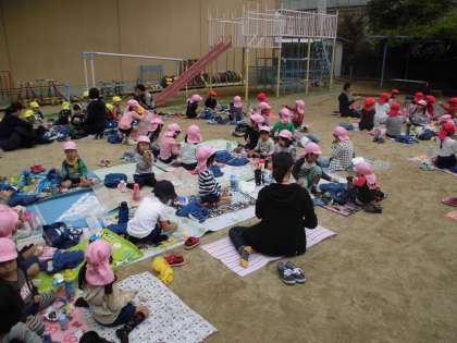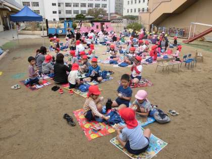 お昼は、園庭でみんなでお弁当を食べて、少しだけ遠足気分を味わいました。