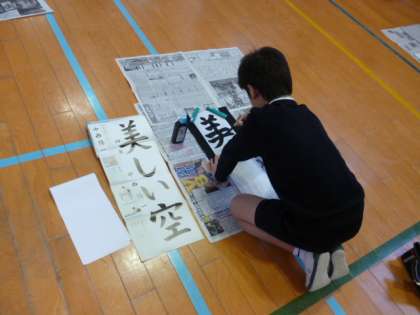 昨日に続き、3・4年生が書き初め大会を行いました。3・4年生は講堂で習字をするのは初めてでした。説明をしっかり聞き、準備をしました。場づくりをするのにも、いつもと違う雰囲気を感じ、書くことへの意欲がわいてきます。時間はかかりましたが、よい作品ができました。