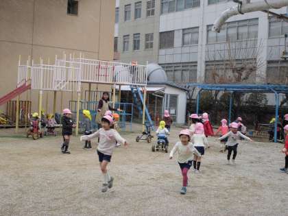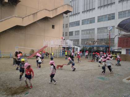 途中、雪が降ってきて、子どもたちは大はしゃぎでした。