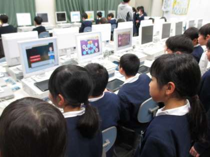 楽器を演奏させたもらったり、パソコンでマウス練習を体験したり、運動クラブでは高学年の力強いプレーを見せてもらったりしました。