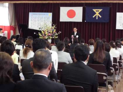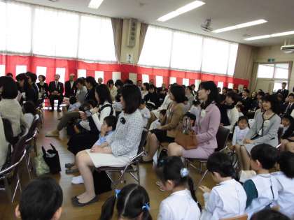 入園式の会場は、2階のホールです。みんなきちんと座ってお話が聞けました。元気にお返事もできました。いよいよ明日から、幼稚園での生活が始まります。ドキドキです。