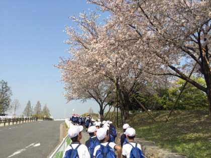 いい天気です。深北緑地に到着しました。桜がきれいです。