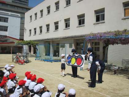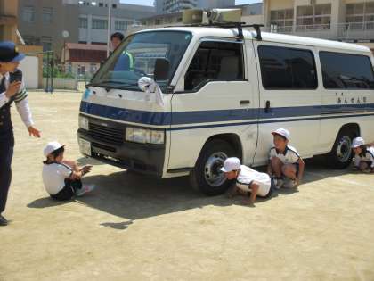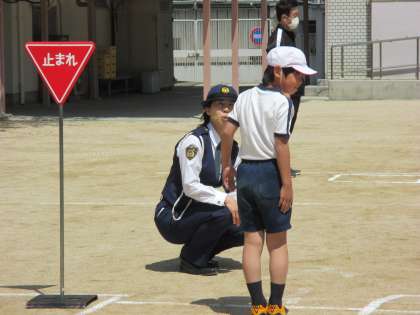 今日は、警察署からおまわりさんが来てくださり、交通安全について教えていただきました。