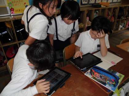 5年生は、4月からいろいろな教科でタブレット端末を活用しています。