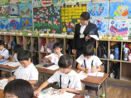 今日は、教育実習生が2年生の国語の授業を参観させてもらいました。子ども達の発表や担任の先生の言葉かけを熱心にメモを取っていました。