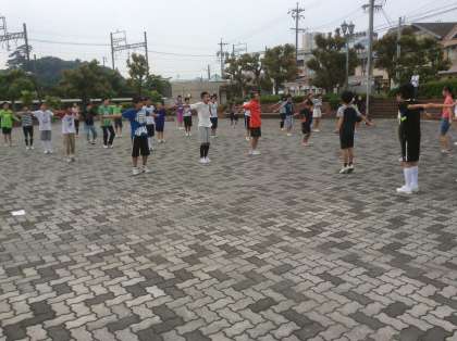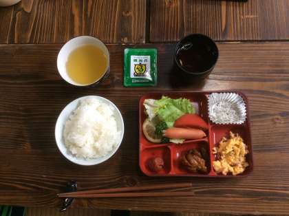 朝の体操のあとはお楽しみ朝食です。おいしそう。しっかり食べることができたかな。
