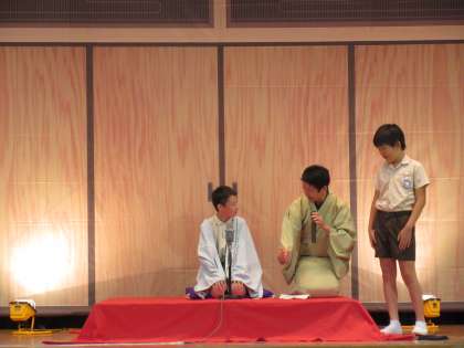 落語の所作を学びました。児童も参加させていただき盛り上がりました。幽霊や食べ方や飲み方の所作もありました。