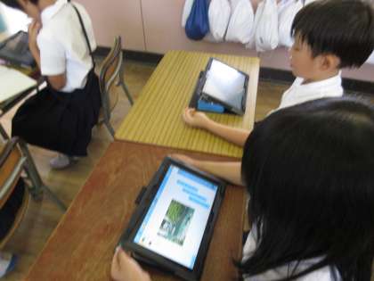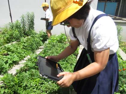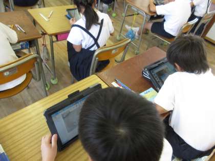 3年生は、運動場に出てタブレット端末でカメラ機能を使っていました。さて何をしているのかな。国語の学習です。日曜日お楽しみに。