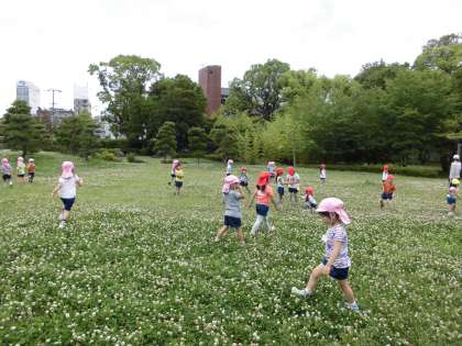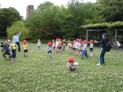 6月13日(火) 藤田公園に出かけました。雨で2回延期して、やっと行くことができました。いいお天気の下、元気に遊びました。ボランティアで付き添ってくださった保護者の方々、ありがとうございました。