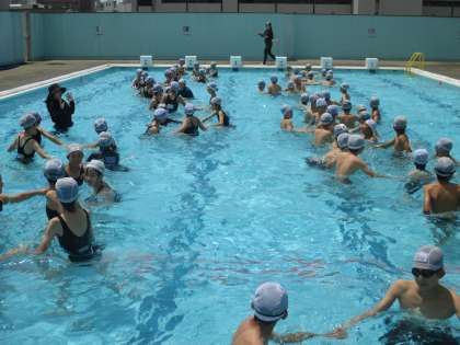 今日は、5.6年生のプール開きでした。よいお天気で気温も高く、気持ちよく泳ぐことができました。
