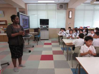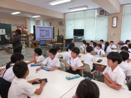 ダニ先生のC−NETがありました。大きな声で歌ったり、踊ったりしながらがら外国語の学習をしました。