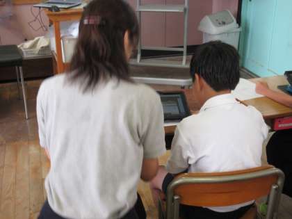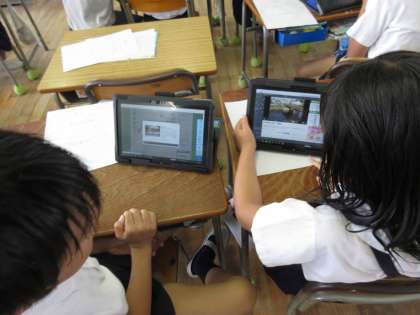 3年生は、国語科で調べ学習をしていました。インターネットで調べるときは、検索するのではなくリンクに飛ぶように予めおすすめのHPをタブレットの中に入れています。ICT支援員の土橋さんも教室に入って支援をしてくださっています。