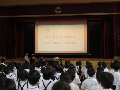今日は音楽集会がありました。全学年で一緒に「うみ」を歌いました。