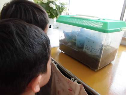 7月7日(金) 小学校の管理作業員さんから、ずずむしの赤ちゃんをいただきました。