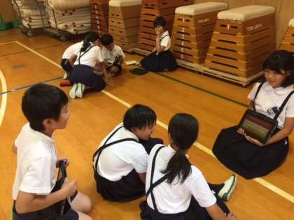 5年生は、林間学習の目的地である天川村について調べたことを4年生にプレゼン発表をしました。4年生からは、「天川村に行きたくなった。」「わかりやすく説明してもらった。」という声をたくさん聞きました。5年生からは、「4年生が真剣に聞いてくれたので発表しやすかった。」「うなづきながら聞いてくれたので、うれしかった。」という声があり、達成感を感じたようでした。