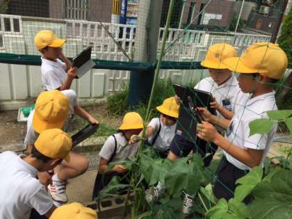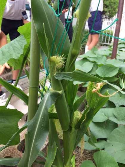 理科の学習で春に植物の成長について学習しました。その時に観察したトウモロコシ、インゲン、枝豆、イネ…。まだ種子だったのに、大きな実をつけています。子ども達はびっくりしていました。思わず、カメラで写真を撮りました。