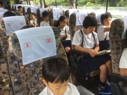 奈良県に入りました。バス内では、キャンプファイヤーの歌の練習をしています。
