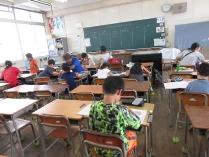 今年は、工事の関係で西校舎の4階の4Aの教室と習熟の教室で学習相談をしています。教室はクーラーが使えます。初日の今日もたくさん来て勉強をしていました。