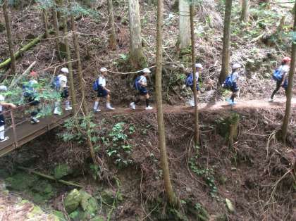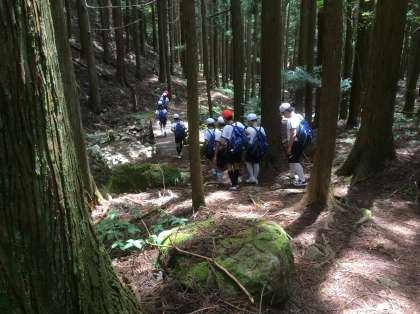 林の中は涼しいです。平坦な道ですが、ときどき、登り下りもあります。