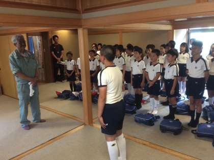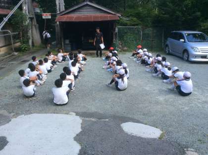 開舎式の後、駐車場まで逃げる避難訓練をしました。