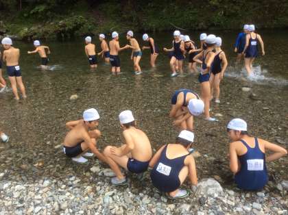 水着に着替えて、川遊びの始まりです。