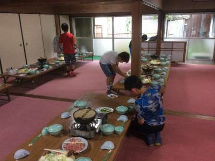 雨が上がりました。食事10分前には食事係さんが、食事準備のお手伝いに来てくれます。