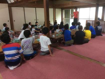 食事後は、先生の指示を聞きます。