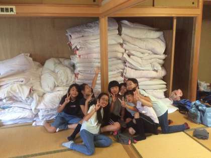 ふとんをきちんとたたんで、元の場所に片付けました。