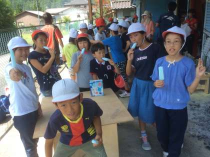 天川村在住の滝川小学校卒業生の方が、アイスの差し入れを持ってきてくださいました。会社を退職後、天川村で民宿を始められたそうです。