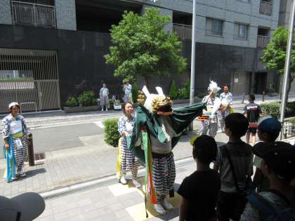 今年も天神祭の獅子舞が滝川小学校にやってきました。